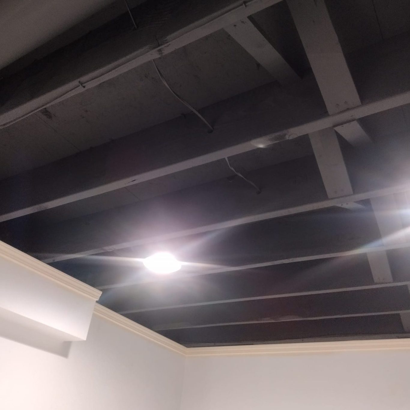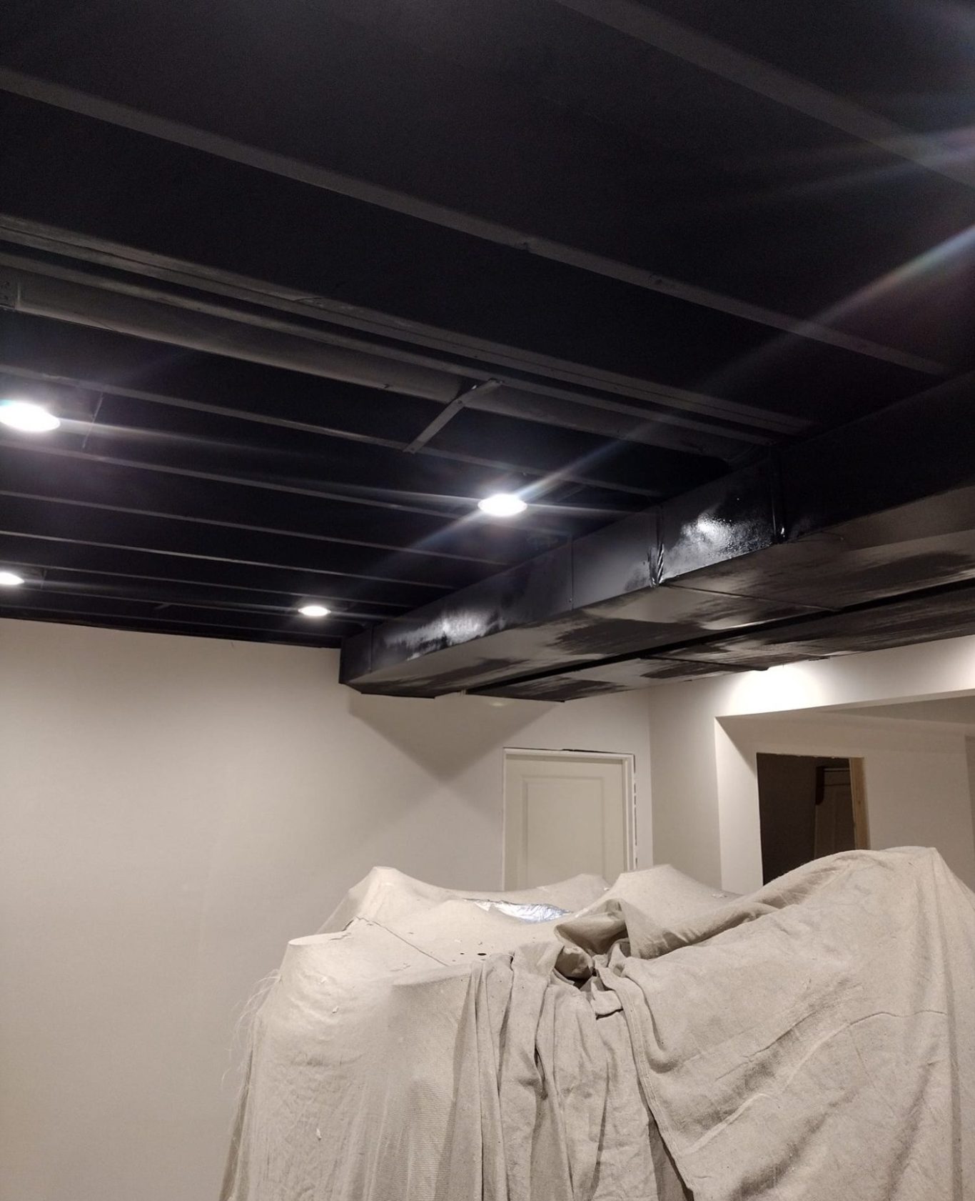 Spraying your basement ceilings is a great way to save you money on your basement remodel or just to give your basement a new look.
